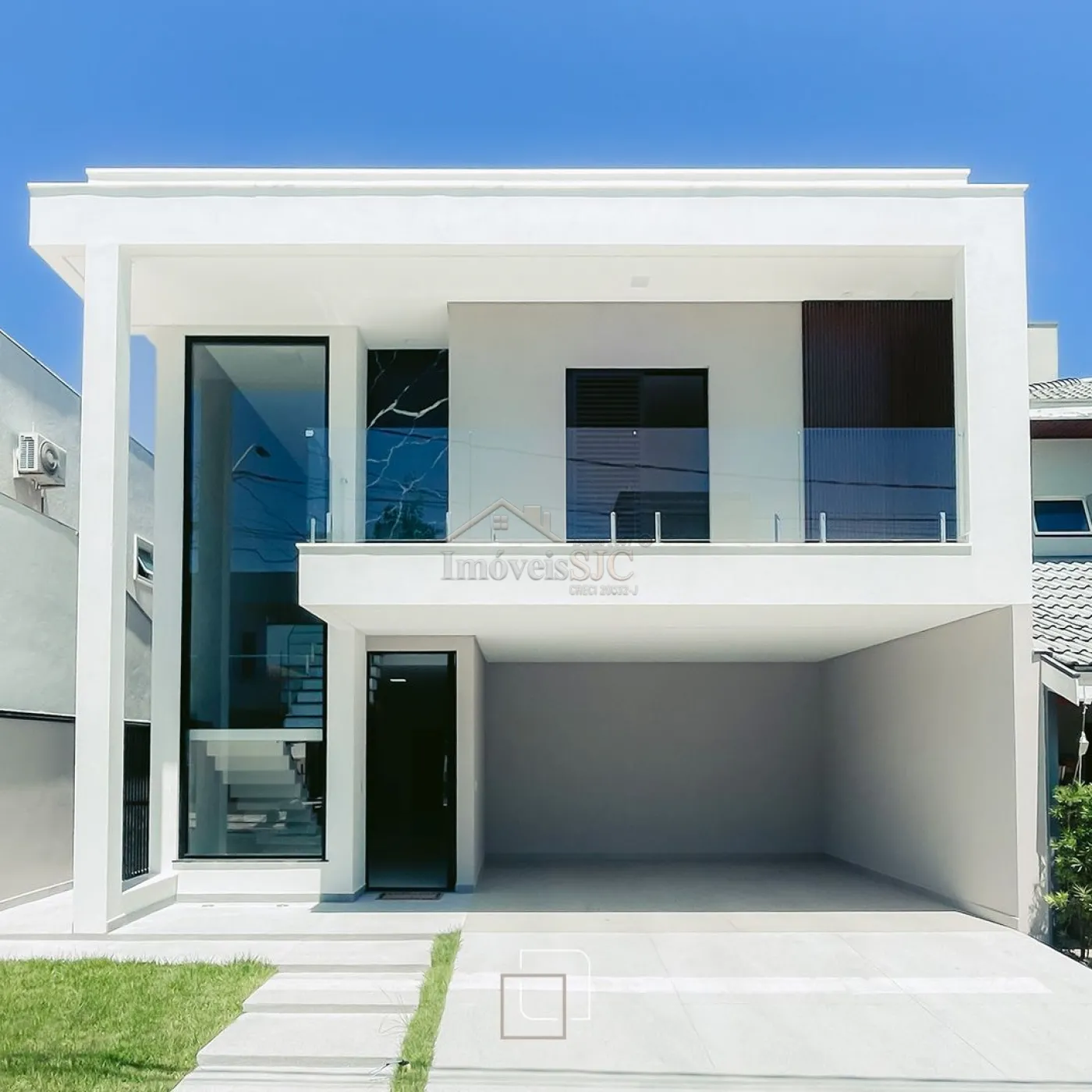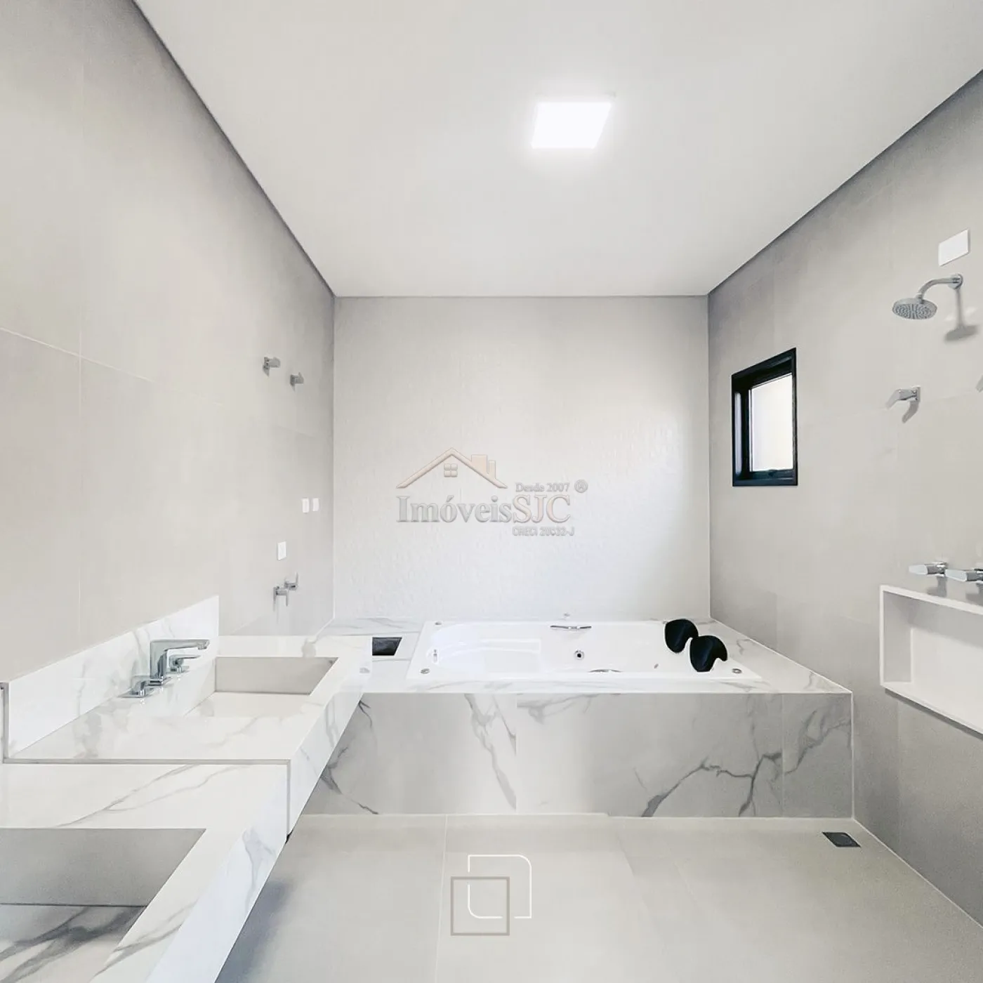 Sobrado com 3 suítes, incluindo uma master com closet e banheira dupla.