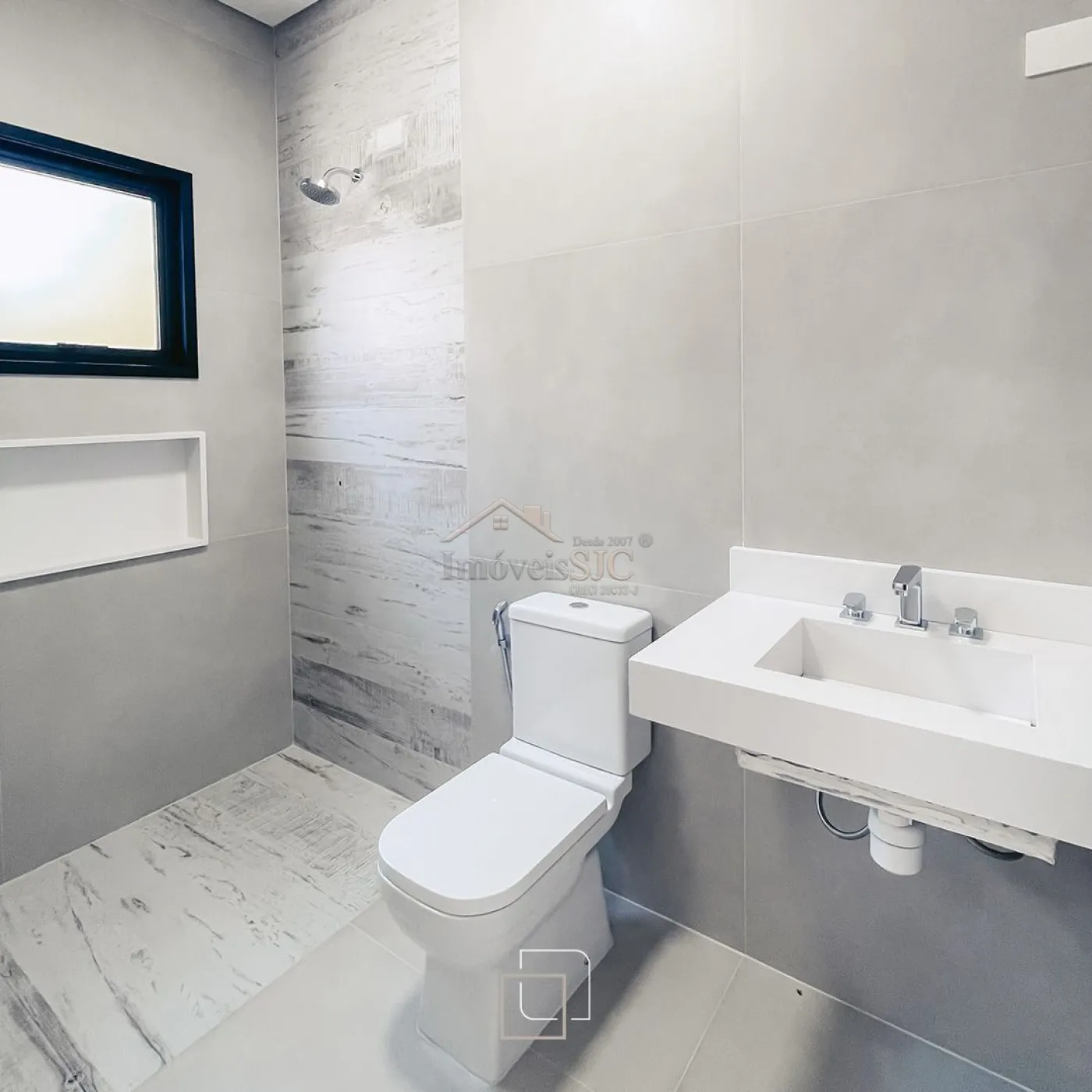 Conta com escritório, sala de estar, sala de jantar e cozinha integrados, além de lavabo e área de serviço. Acabamentos premium: revestimentos Eliane, Portinari, Portobello e Incepa, louças Celite Elite, cubas esculpidas em porcelanato e Silestone, metais Deca e Docol (cozinha com filtro embutido).