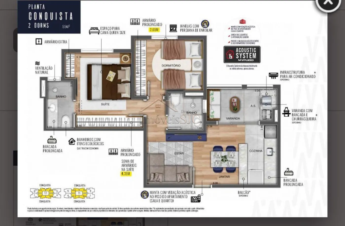 2 dormitórios, sendo 1 suíte com armários planejados