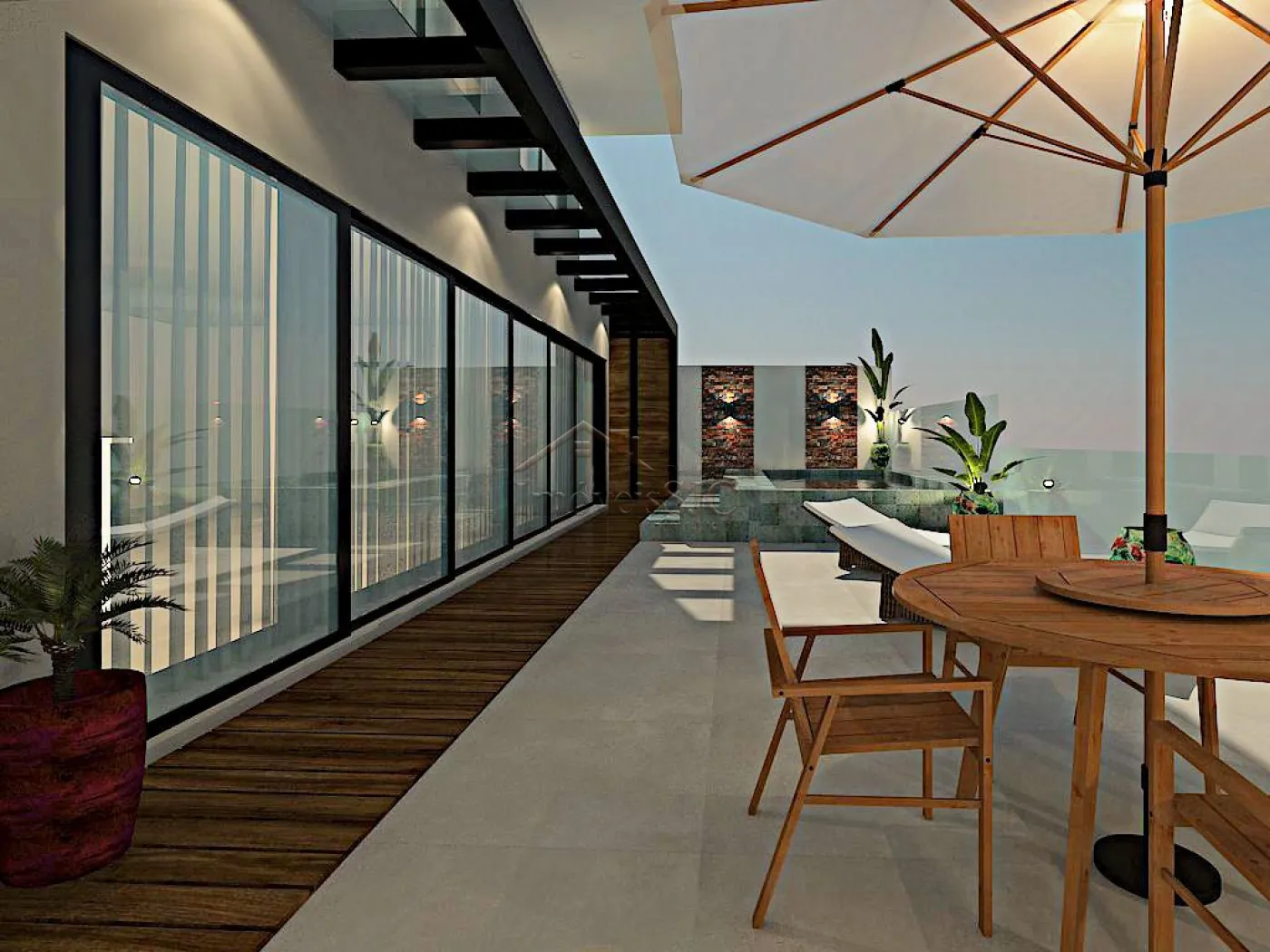 Área gourmet externa integrada com a cozinha e sala de estar, podendo ser fechada com portas desenhadas exclusivas para esse lindo projeto.